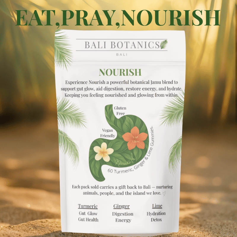 Formulated with Bali’s golden root Turmeric, soothing Ginger, and cleansing Lime — Nourish helps calm inflammation, support digestion, and restore natural energy.